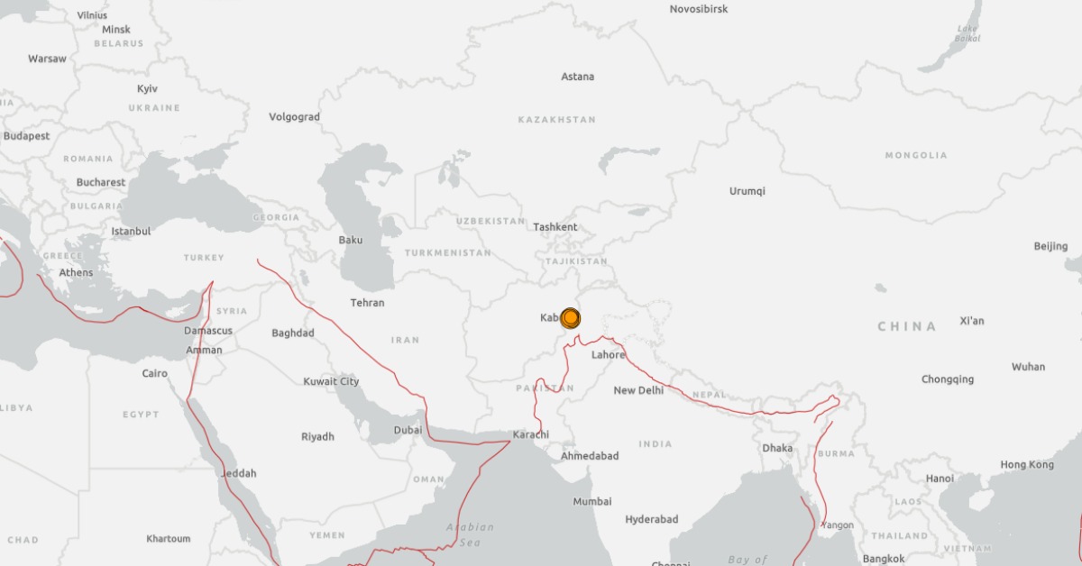 阿富汗興都庫什地區於當地時間31日晚間11點47分時,發生規模6.0強震。(圖/美國地質署)
